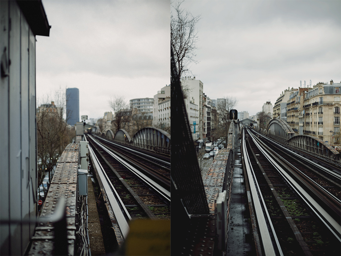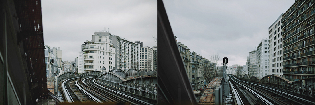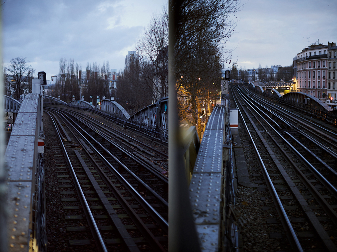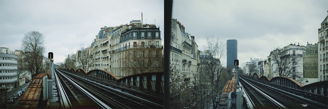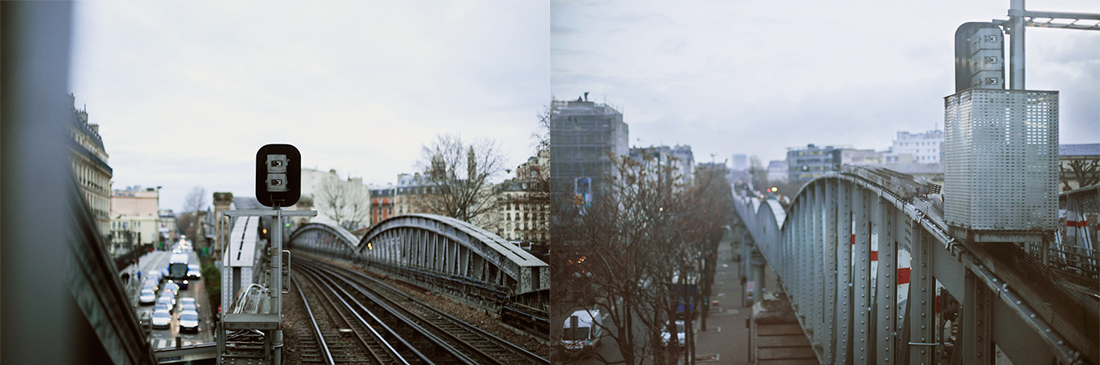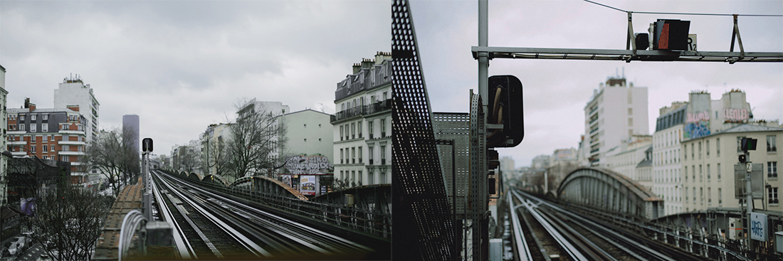 Each diptyc is made of two points of view, one glance toward the other, ever following the metro line and the rails until it finally vanishes